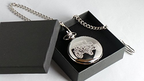 Best Seller! Massey Ferguson, GPO Group Exclusive Massey Ferguson Tractor Diamond Cut Engraved Silver Plated Half Hunter Pocket Watch In Gift Box Review