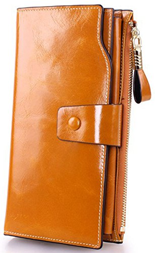 SQLP offer SQLP Women's Large Capacity Luxury Wax Genuine Leather Wallet With Zipper Pocket (Camel). This awesome product currently limited units, you can buy it now for £45.00 £26.99, You save £18.01